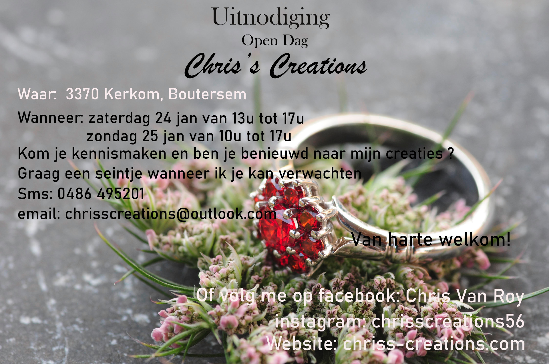 Ter gelegenheid van de kunstroute ook een open atelier, op zondag 18 mei bij Chris's Creations
